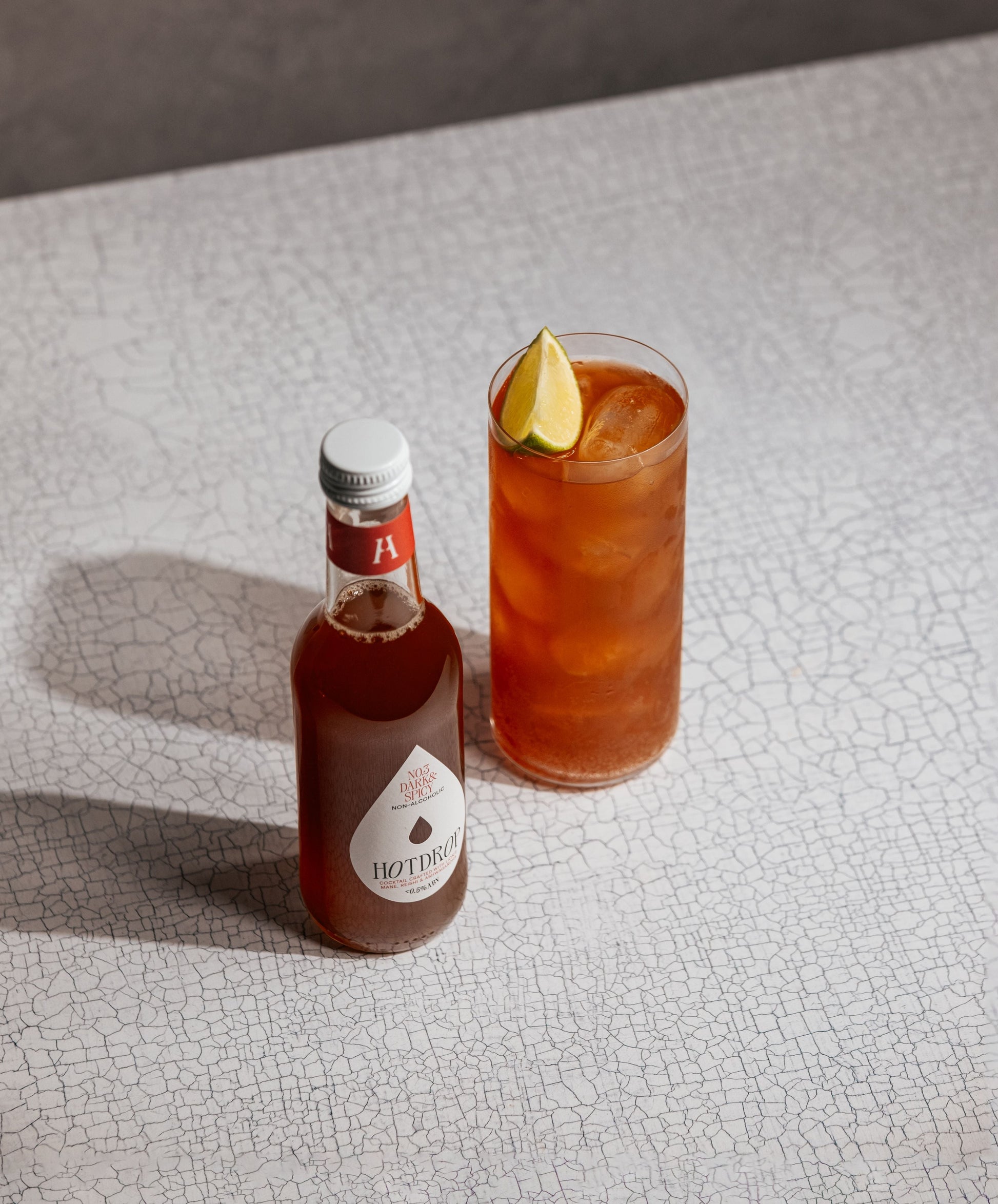 A bold blend of dark rum and lime flavours, lifted by a splash of cola and a hint of coconut sweetness, finished with a warming touch of ginger.